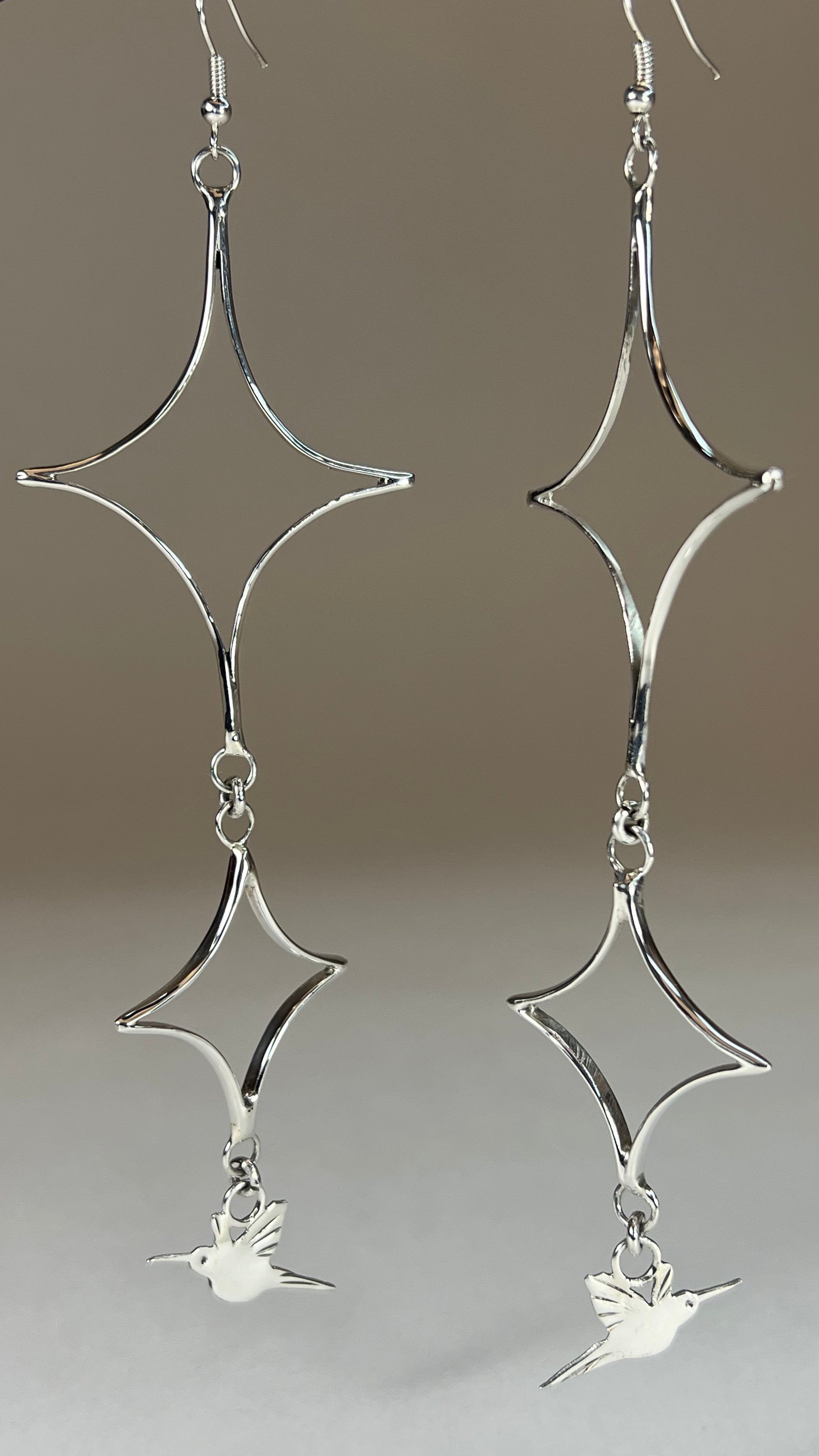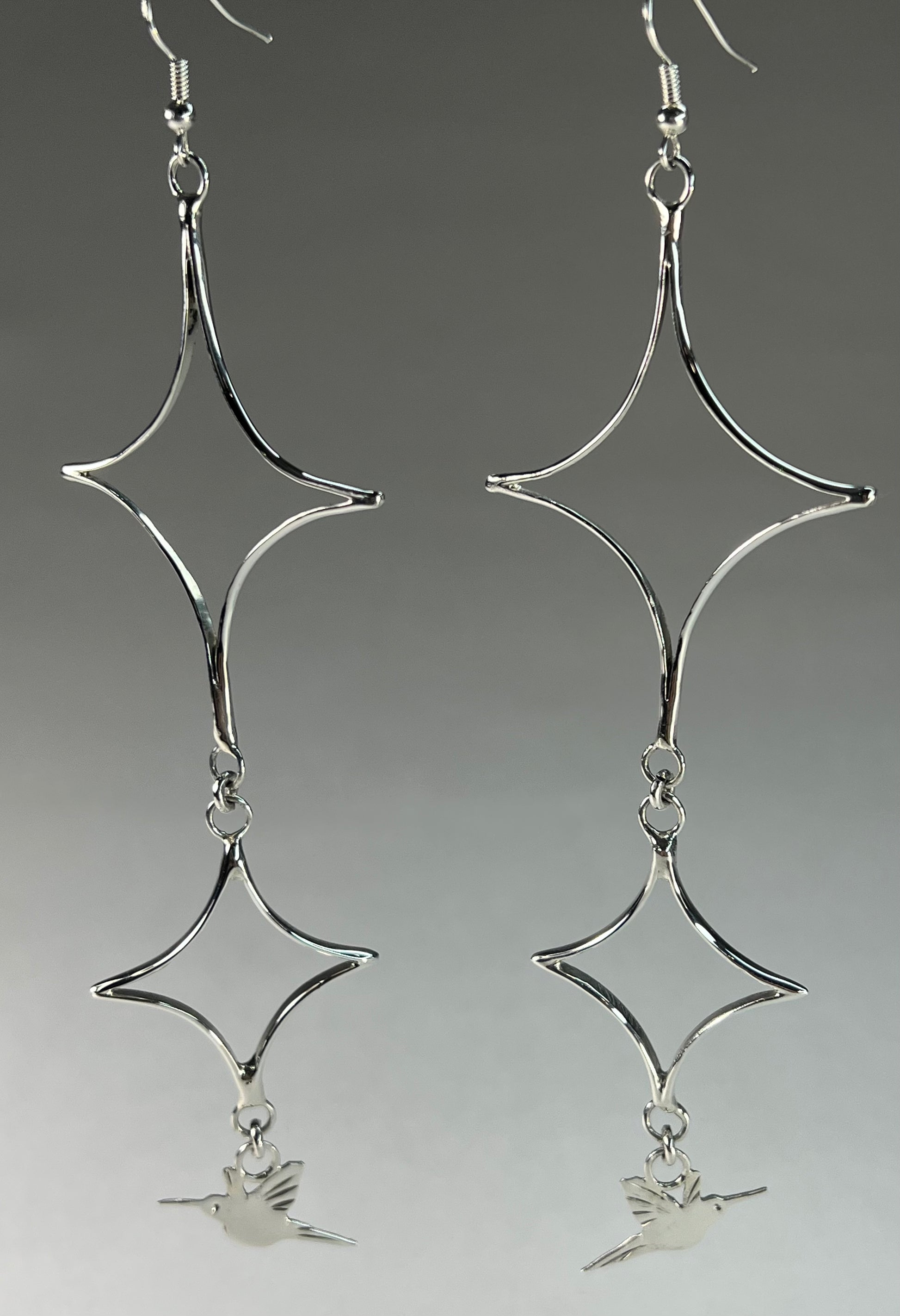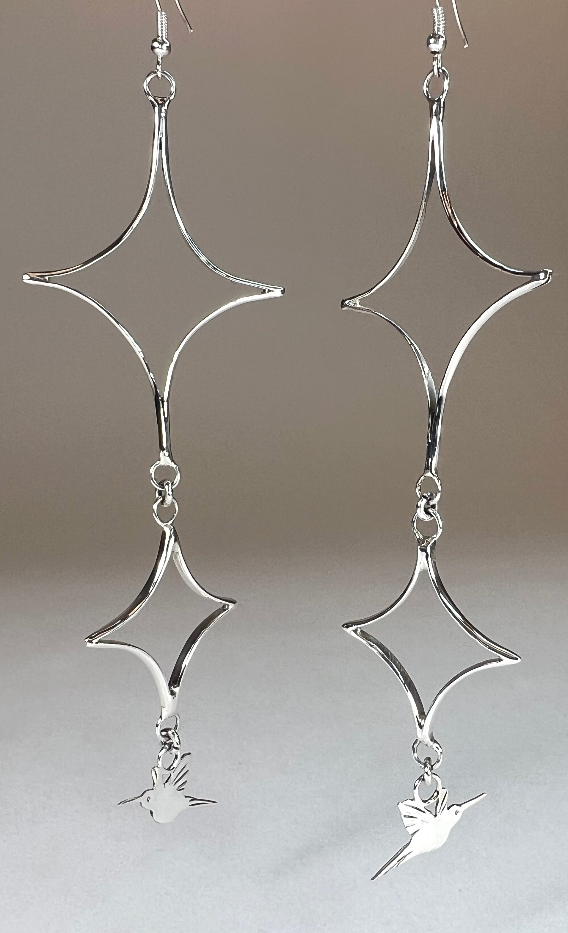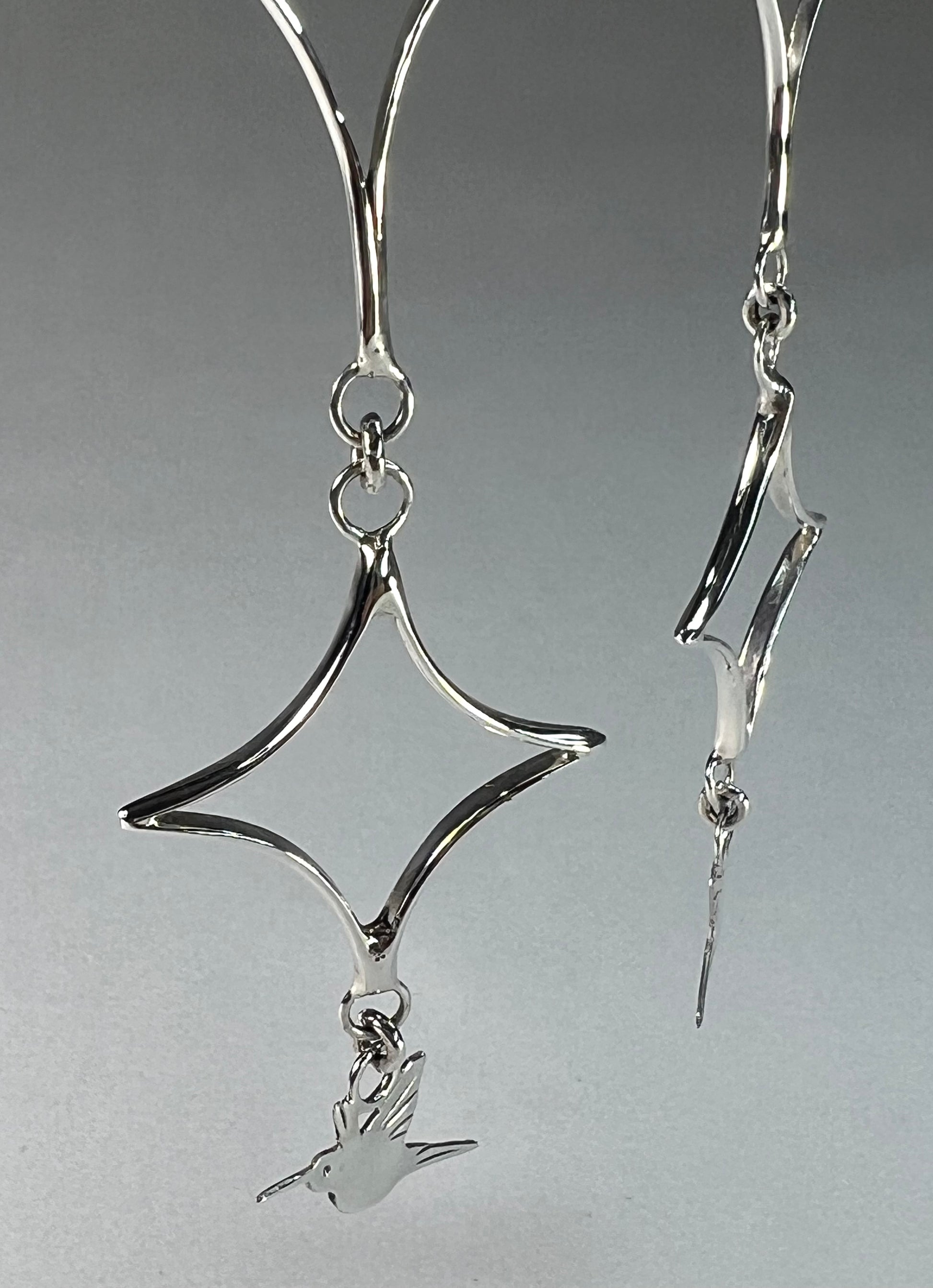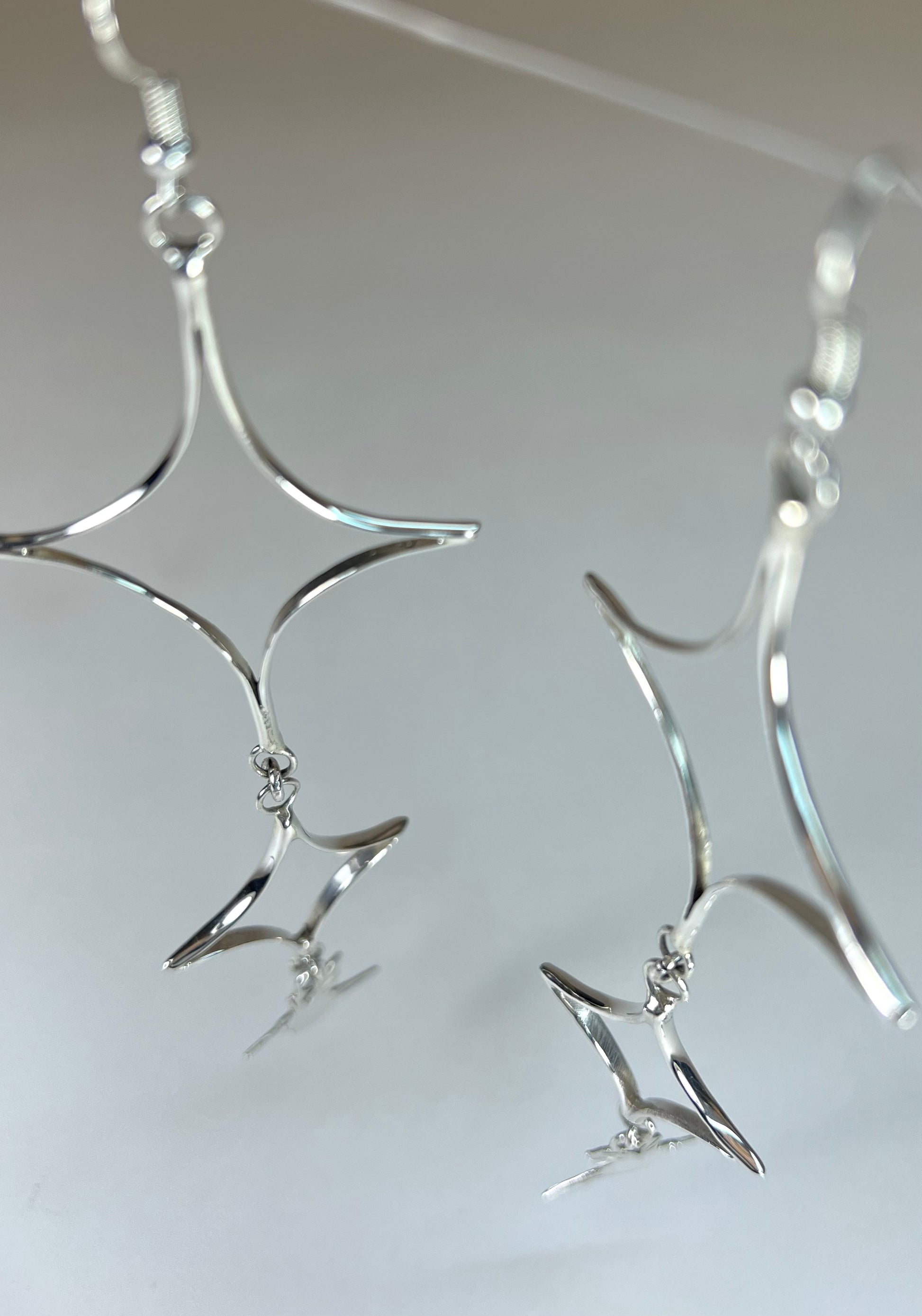 These are two of our larger size stars together. These two are meant to bring attention to the waiver. These are big, these are shiny. These are meant to shine big. These are handmade hand soldered. Each star is made with six individual small pieces, put together and soldered. Everything is hand hammered and soldered together as individual pieces to become one.